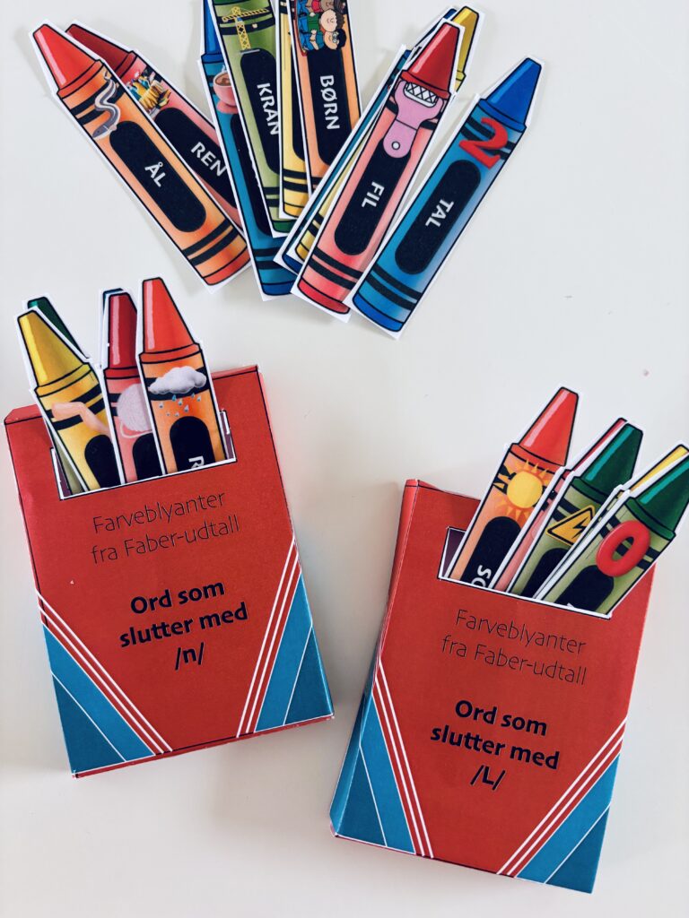 Print materialet ud og saml farveblyant kassen. Laminér evt. farveblyanterne og klip dem ud enkeltvist. Placer farveblyanterne med bagsiden opad. Barnet skal trække én farveblyant ad gangen, benævne ordet (gentag gerne ordet 3-5 gange) og herefter placere blyanten i kassen. Når kassen er fyldt, er spillet slut.