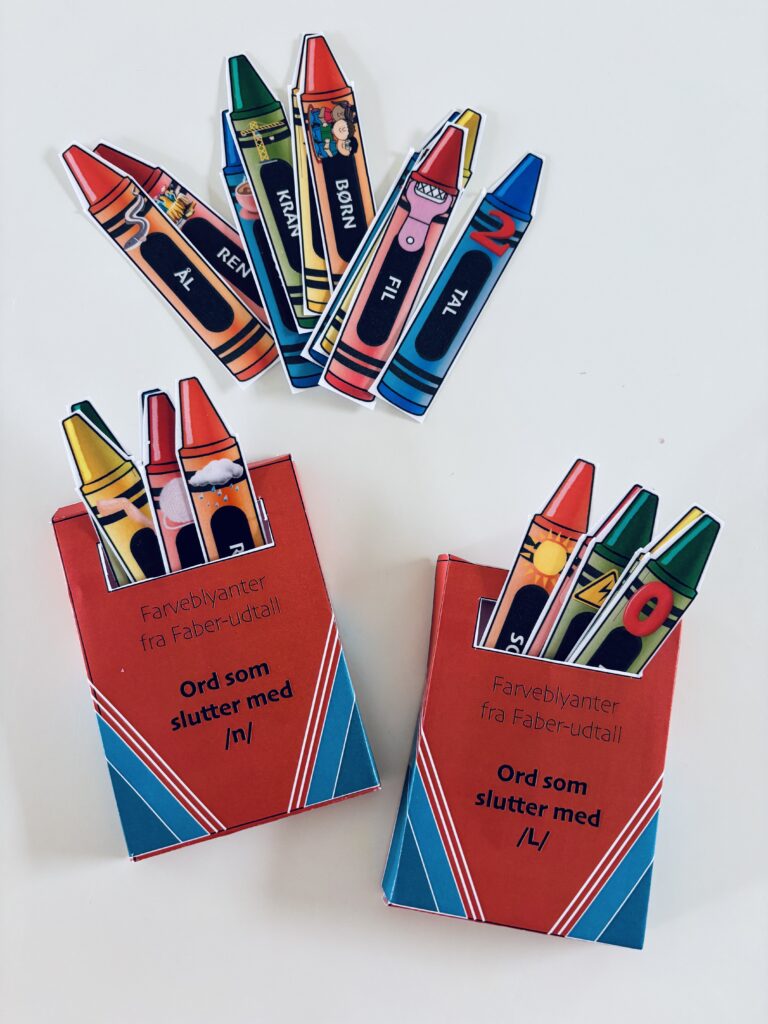 Print materialet ud og saml farveblyant kassen. Laminér evt. farveblyanterne og klip dem ud enkeltvist. Placer farveblyanterne med bagsiden opad. Barnet skal trække én farveblyant ad gangen, benævne ordet (gentag gerne ordet 3-5 gange) og herefter placere blyanten i kassen. Når kassen er fyldt, er spillet slut.