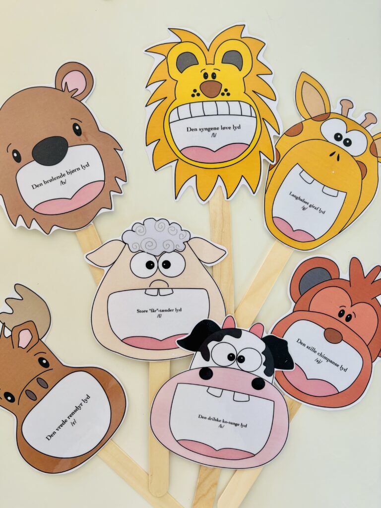 Disse sjove dyr anvendes som prompting til udtaletræning med dit barn. Dyrerne visualisere barnets lyd på en sjov og lærerig måde, og kan være med til at gøre fonologitræningen lidt sjovere.