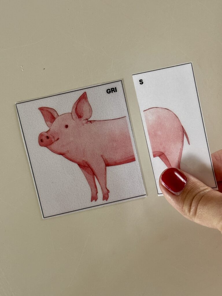 Dette spil minder lidt om et sjovt puslespil, som træner barnets finale lyde, på en ny og anderledes måde. Ved at dele lyden op, er det nemmere for barnet at sige den finale lyd, og dette er derfor god træning for barnet med fonologiske vanskeligheder.