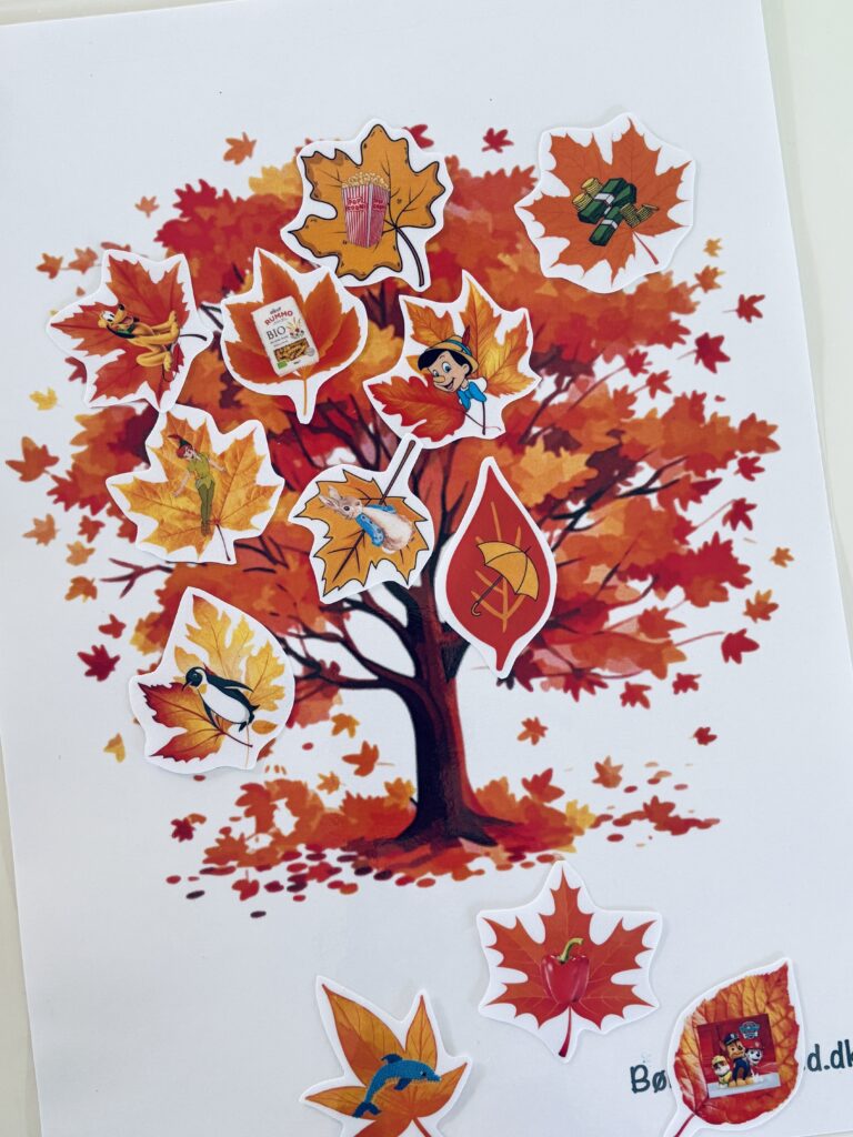Dette spil skaber masser af efterårsstemning – et hyggeligt spil til de børn, der også er lidt konkurrencemennesker. Print materialet ud og laminer gerne materialet, så bladene er nemmere at arbejde med. Udvælg den/de lyde du vil arbejde med og klip bladene ud. Placér træet foran barnet og placér bladene på træet med billedsiden opad.