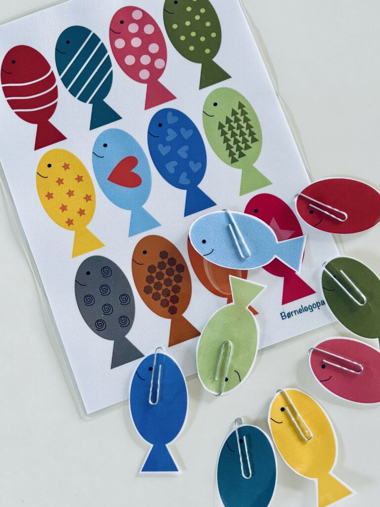 Tomme fisk: De tomme fisk bruges til specifik træning og automatisering af -sk endelsen. For at få -sk automatiseret til spontantalen, er det vigtigt at træne ordet i en sætning. Med en fiskestang trækkes én tom fisk ad gangen, og barnet skal her producere én sætning, fx ”Jeg har fanget en rød fisk”. Det er vigtigt at barnet konsekvent får en sagt en sætning med ordet ”fisk”, da dette er vigtigt for automatiseringen af -sk lyden.