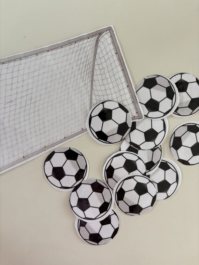 Placér alle fodboldene med billedsiden nedad. Barnet skal trække én fodbold ad gangen, benævne billedet (gentag gerne 3-5 gange) og herefter placere fodbolden i målet. Når alle fodboldene er placeret i målet er spillet slut.