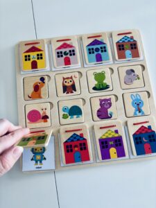 Til de lidt mindre børn, plejer dette at være en ret sjov måde at øve på. Hvis du har et puslespil med låger, er det oplagt at gemme øvekortene indenunder lågerne. En simpel og hurtig måde at få trænet udtalen på.
