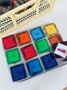 Dette spil kan du lynhurtigt lave derhjemme, hvis du har en metal muffinpande og Magnatiles! Klip dine øveord ud og placer dem med bagsiden opad rundt i muffinformene. Herefter placeres Magnatiles ovenpå billederne. Barnet skal nu fjerne én Magnatile ad gangen og benævne billedet – gentag gerne 3-5 gange, så udtalen trænes ekstra.