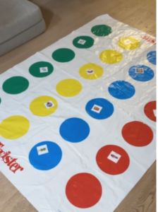 Placér alle øveordene rundt omkring på Twistermåtten. Spil herefter spillet som normalt, men når barnet/I lander på en brik skal dette ord produceres så udtalen trænes. Man kan vælge at fjerne billedet herefter, eller man kan ligge der på en ny plads for ekstra mulighed for gentagelse. Fortsæt indtil alle billederne er benævnt.